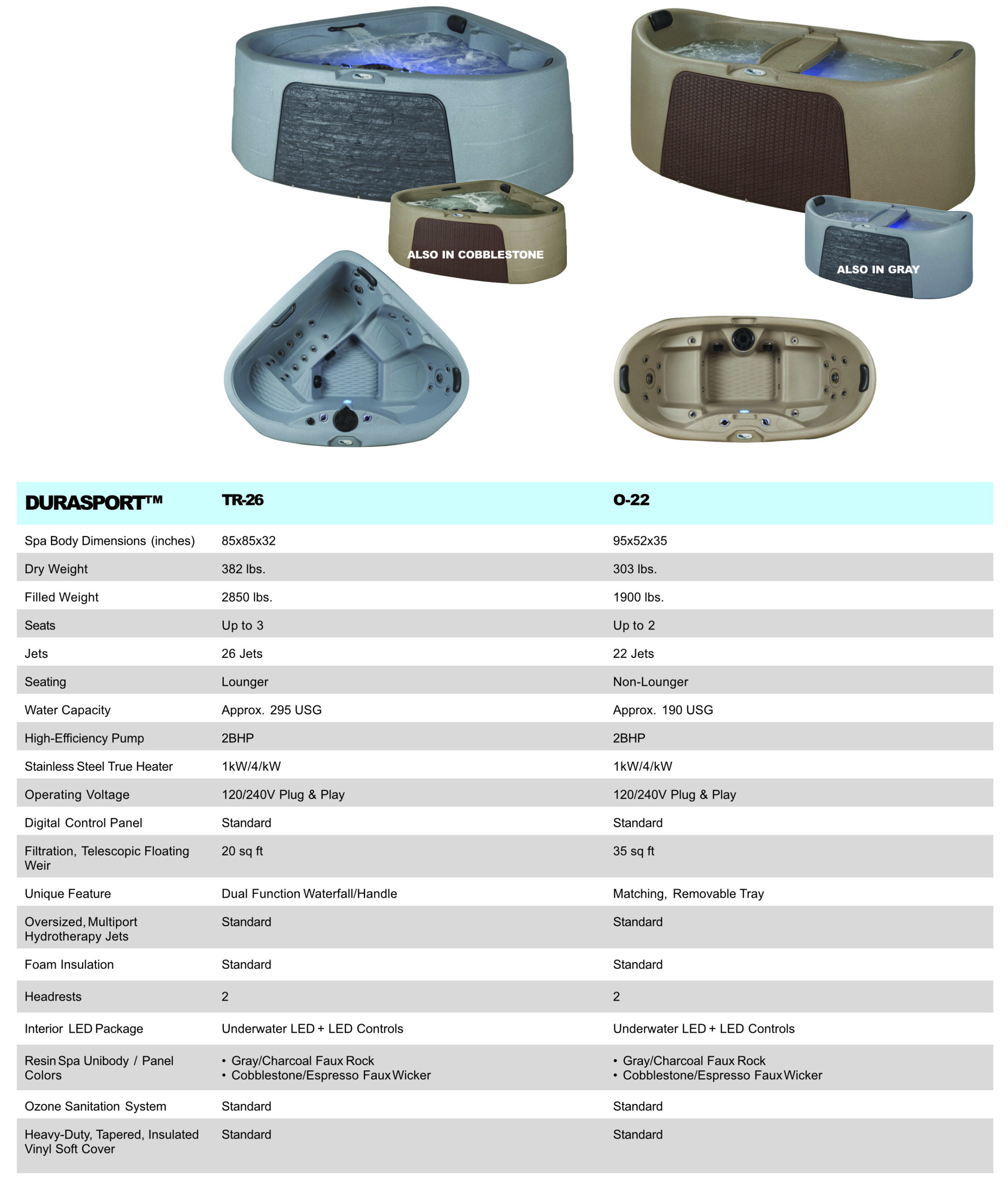 Built to withstand year-round use in any climate, the Durasport Series is engineered with quality components and rugged construction. Each spa comes equipped with: