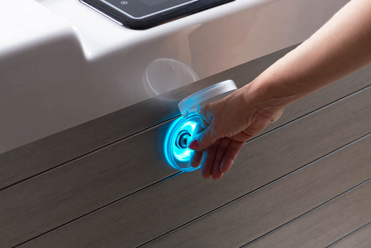Enjoy crystal-clear water without harsh chemicals. The UV/O3 sanitation system combines ozone and ultraviolet technology to naturally kill bacteria and contaminants — delivering a clean that is up to one million times faster than traditional oxidizers, while eliminating chemical by-products.